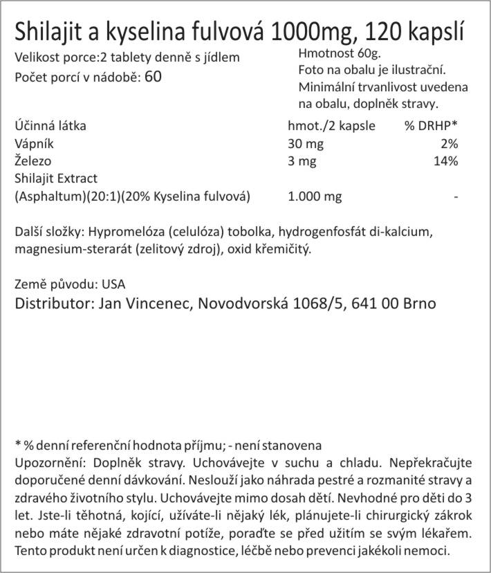 Shilajit a kyselina fulvová 1000mg, 120 kapslí